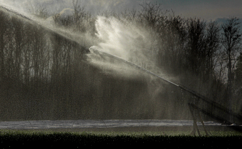 Öntözőrendszer működés közben Mórahalmon 2021 nyarán - Kép forrása: Shutterstock