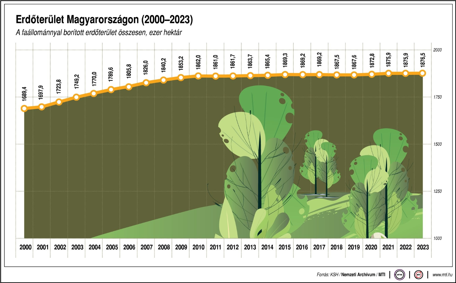 Magyarországon az elmúlt években is sikerült megőrizni, sőt kis mértékben még növelni is az erdővel borított területek nagyságát - Grafika forrása: MTI