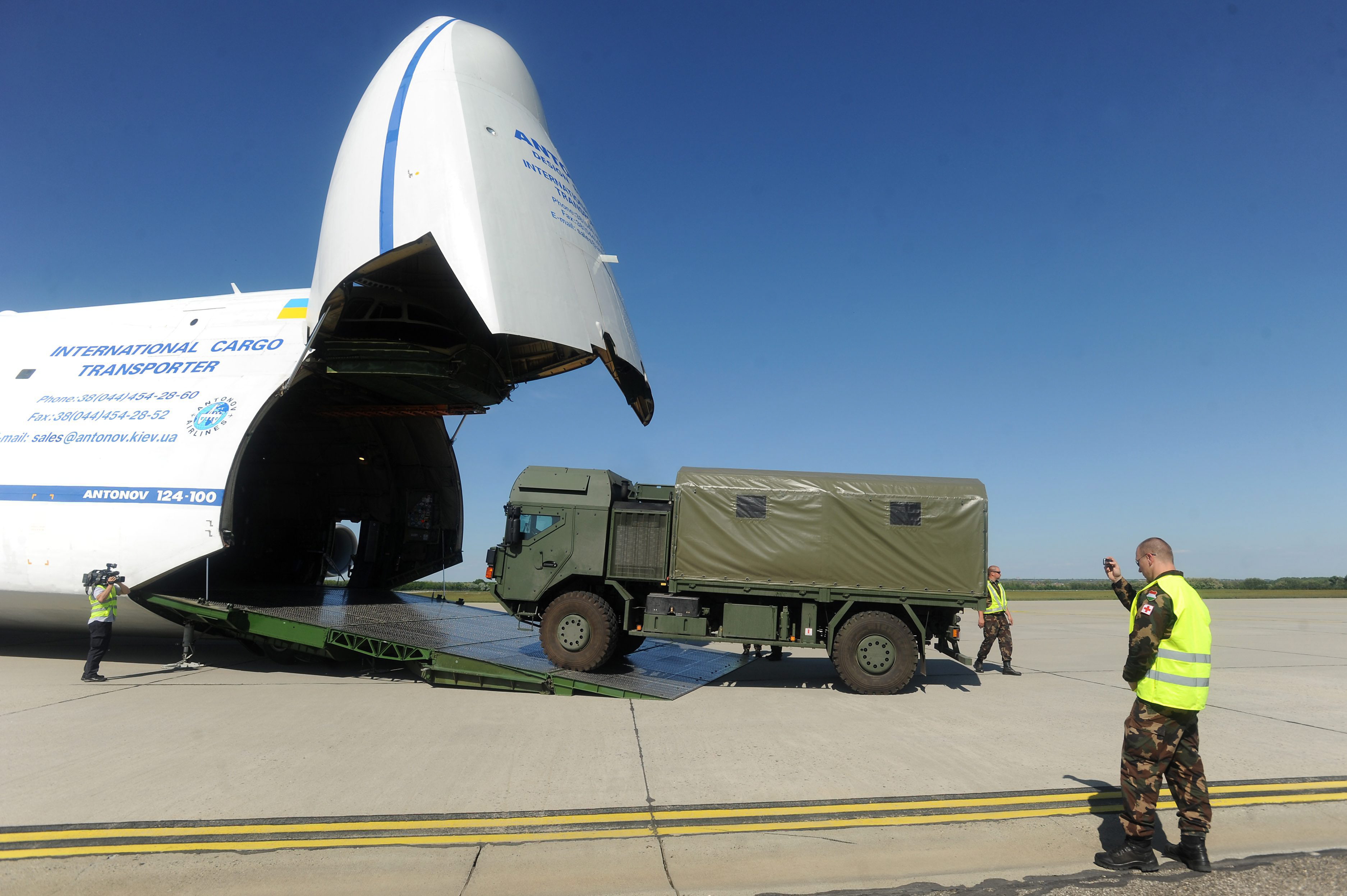 Rába, amint repülőre száll – az Antonov 124-100 óriásgép azóta megsemmisült az ukrán-orosz háborúban