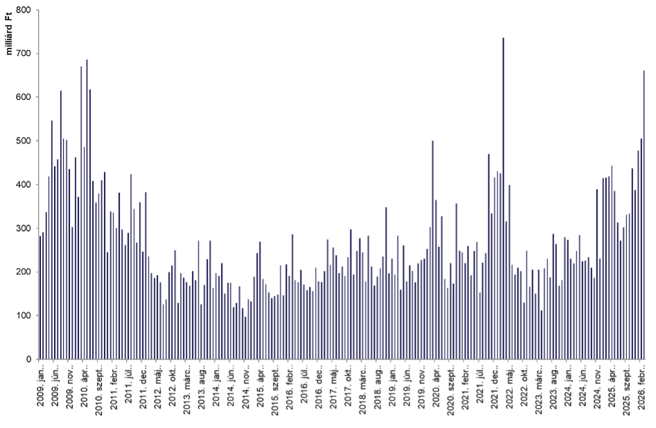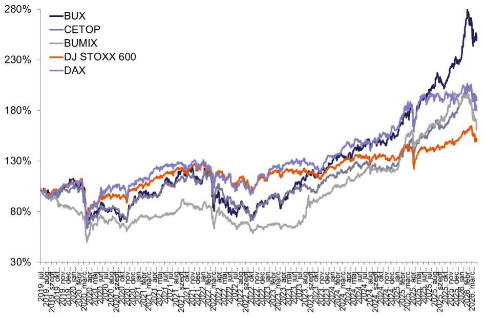 A márciust a fokozódó kockázatkerülés jellemezte a tőkepiacokon. Az Európai Központi Bank (EKB) frissített előrejelzése szerint az eurózóna 2026-os gazdasági növekedése 0,9 százalékra eshet vissza az év során, míg az átlagos infláció 2,6 százalékra nőhet. A befektetői kedvre a nemzetközi gazdaság kilátások alakulása mellett a közel-keleti konfliktus elhúzódása és az energiapiaci turbulencia is negatív hatással voltak.