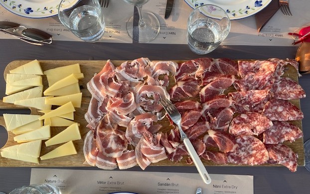 Négy Proseccot kínáltak a kifejezetten bőséges vacsora mellé: a hidegtálakon roskadozó prosciutto crudo, kolbász, zöldségek, sajtok, isteni olivaolajak után grill ételeket. Mmindezért az exkluzív élményért fejenként 40 Eurot fizettünk.