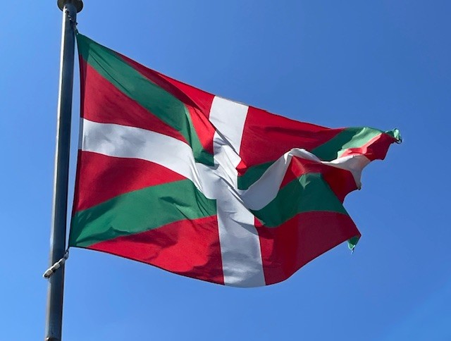 A baszk zászló (Ikurriña) a baszk identitás egyik legismertebb szimbóluma. Piros háttér: a szabadságért ontott vér, zöld András-kereszt: a Guernica tölgyfára utal, a fehér: a függőleges-vízszintes fehér kereszt a kereszténység jelképe.