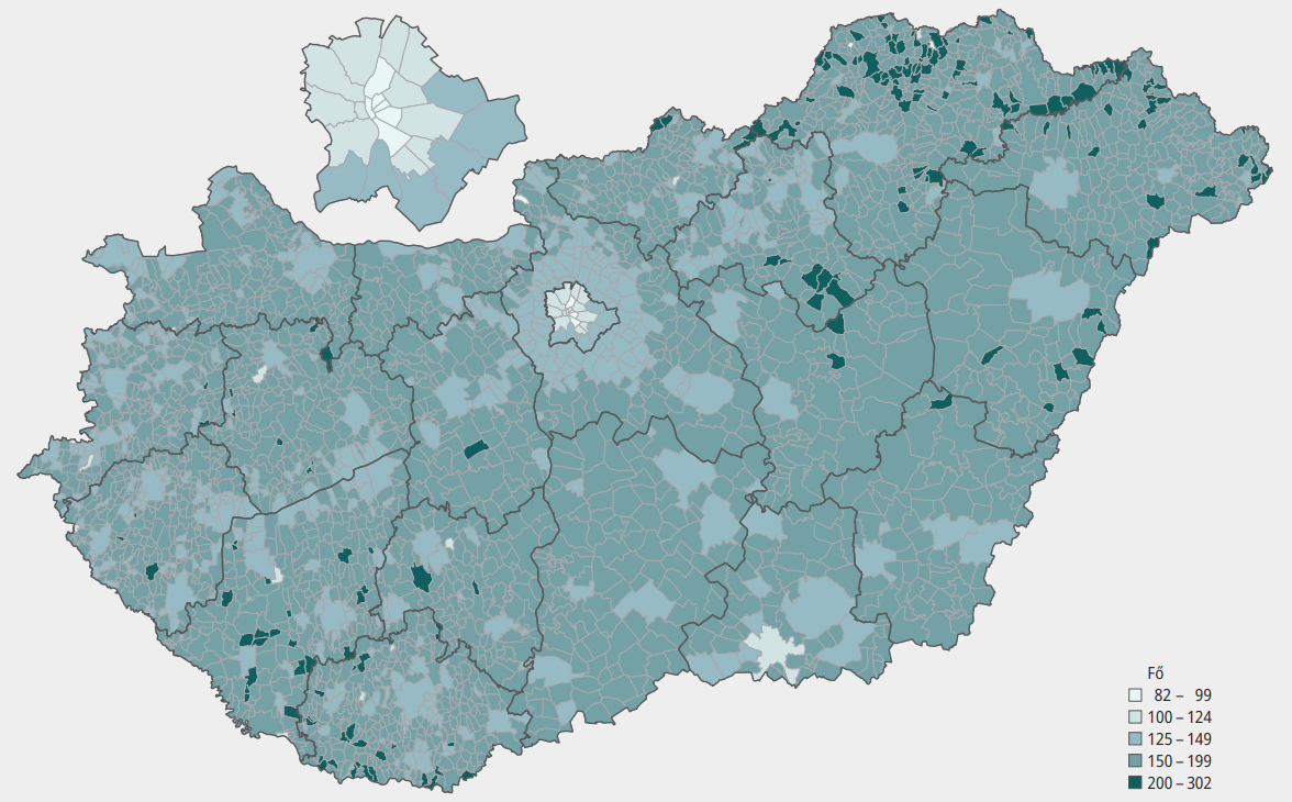Az eltelt bő egy évtized alatt esett azoknak a településeknek a száma, ahol a száz nőre jutó átlagos gyermekszám eléri a 200-at. Még 2011-ben 350 olyan település volt, ahol 200 feletti volt az átlagos gyermekszám, 2022-ben már csak feleannyi.