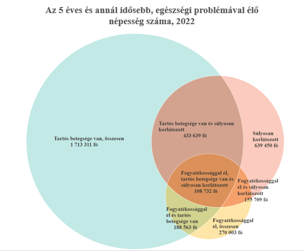 Közel 460 ezer fő, a válaszadók 9%-a számolt be súlyos korlátozottságról, míg mérsékelten korlátozottnak 1,8 millió fő, a kérdésre válaszolók 27%-a vallotta magát. A fogyatékossággal élők több mint fele (58%), a tartós betegek negyede (25%) él súlyos funkcionális korlátozottsággal. 109 ezer fő, a válaszadók 2%-a súlyosan korlátozott, fogyatékossággal élő és tartós beteg egyszerre.