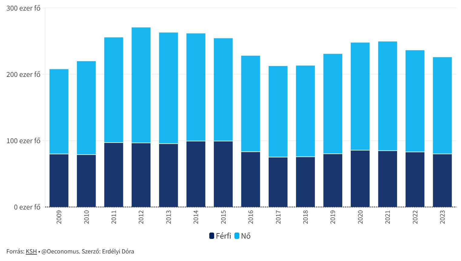 A részmunkaidőben foglalkoztatottak száma 210-270 ezer között mozgott 2009-2023 között 240 ezer fős átlaggal, míg arányukat tekintve, a 15-64 éves foglalkoztatottak 4-6,5%-át tették ki a vizsgált években (átlag: 5%) - írta meg az Oeconomus.