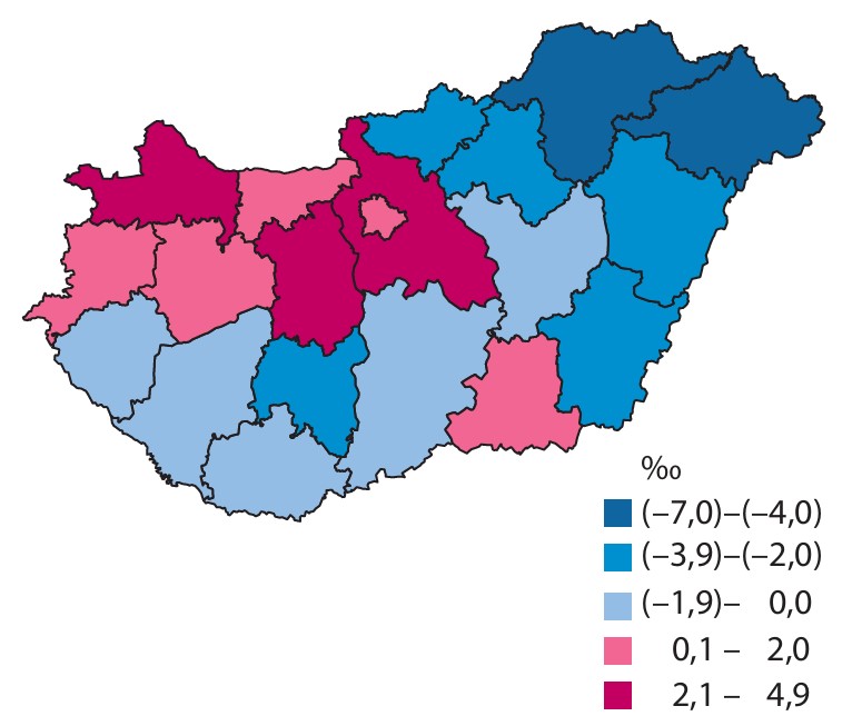 2024-ben Pest és Győr-Moson-Sopron vármegye vándorlási nyeresége volt a legmagasabb, ide költöztek a legtöbben. A vándorlási folyamatok nyertesei jellemzően a dunántúli vármegyék voltak, míg a legnagyobb vándorlási veszteséget Szabolcs-Szatmár-Bereg és Borsod-Abaúj-Zemplén vármegye szenvedte el.