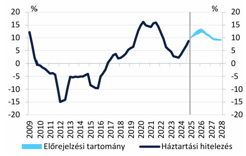 Ami – tekintettel arra, hogy a legtöbb ügyfél a maximális, 4 millió forintos összegben veszi ezt a kölcsönt igénybe – csaknem 400 milliárd forint új hitelt jelent. Egészében véve tehát a lakossági hitelpiac az idei évben is jó erőben lesz. Az év végére várt csaknem 12 ezer milliárd forintos lakossági hitelállomány mintegy 15%-kal haladhatja meg a 2024. év végi 10,4 ezer milliárdot. Ez azt is eredményezi, hogy a háztartások banki hiteleinek tavaly év végi 13%-os GDP-arányos mutatója - ami a legalacsonyabbak közé tartozik az Európai Unióban - akár egy teljes százalékponttal is emelkedhet - jelentette ki az elemző.