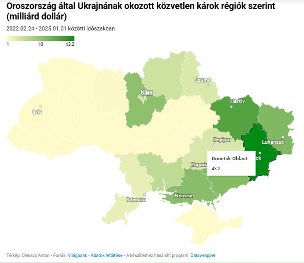 A károk területi eloszlása is figyelemre méltó: a leginkább érintett régiók – Donyeck, Harkiv, Luhanszk, Zaporizzsja, Herszon és Kijev megyék – a közvetlen károk 72%-át, vagyis 127 milliárd dollárt szenvedtek el. Az újjáépítési erőfeszítések jelentős része ezekre a területekre kell, hogy fókuszáljon.