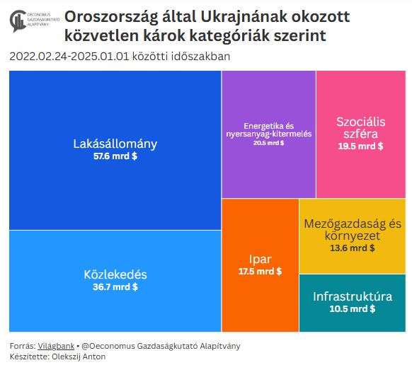 A Világbank RDNA4 jelentése alapos képet ad az orosz-ukrán háború pusztításának pénzügyi vetületéről: a háború kezdete óta keletkezett közvetlen károk értéke 176 milliárd dollár, amely az infrastruktúra, a gazdaság és a társadalmi rendszerek széles körét érinti. A legjelentősebb veszteségek a lakásépítési szektorban (az összes kár 33%-a) mutathatók ki, ami jól tükrözi a civil lakosságot ért közvetlen csapásokat.