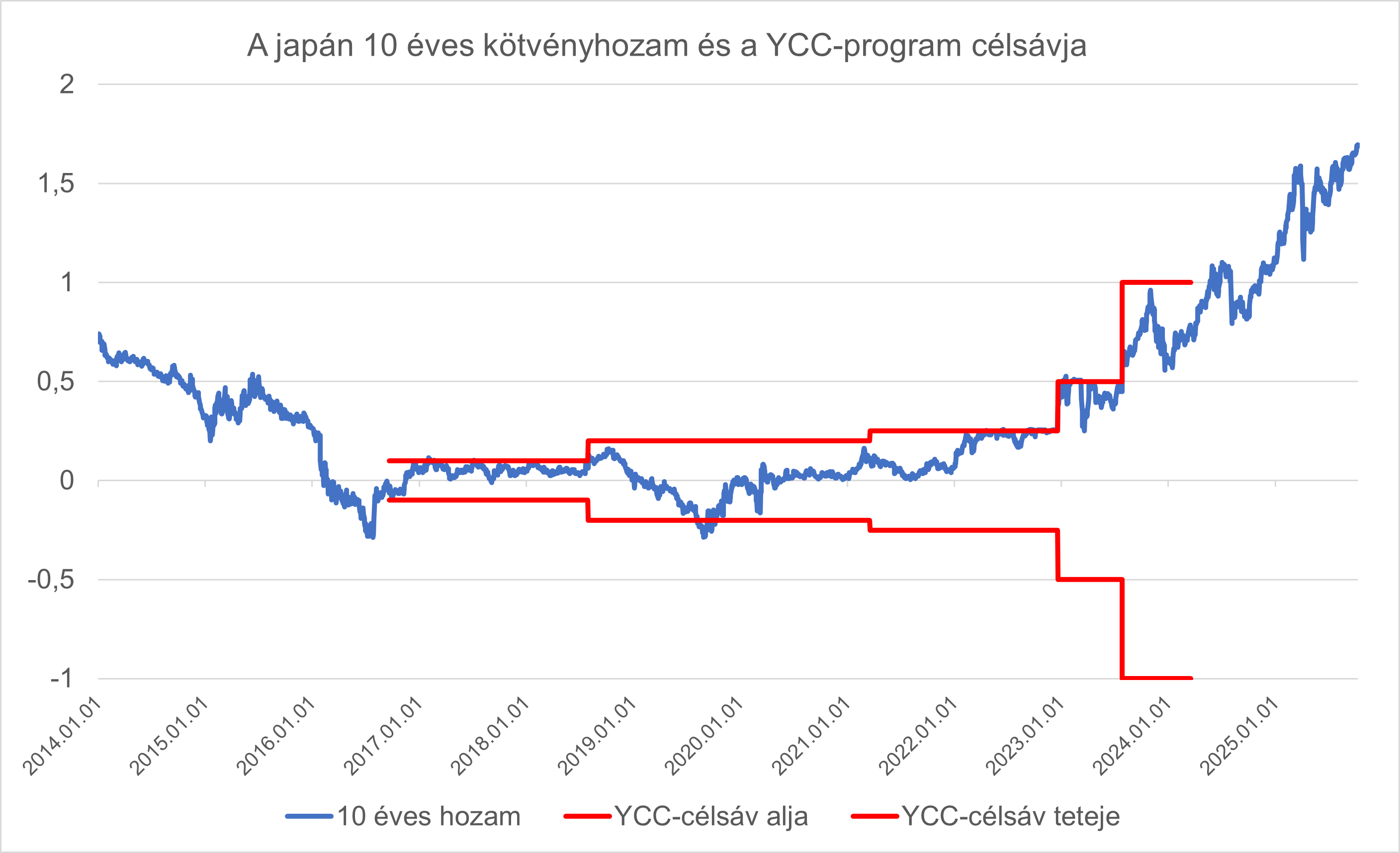 2016-ban az egynapos irányadó kamatszintet -0,1 százalékon határozták meg, míg a 10 éves államkötvény hozamára 0 százalék körüli célt tűztek ki. Hivatalosan nem adtak meg toleranciasávot, de a gyakorlatban +/-0,1 százalékkal számoltak a piaci szereplők. 2018 júliusában lazítottak a feltételeken, a 0 százalékos hozamcélhoz +/-0,2 százalékos célsávot rendeltek, amit 2021 márciusában már +/-0,25 százalékra szélesítettek. 2022-ben az orosz-ukrán háború nyomán kitört energiaválság miatt Japánban is emelkedni kezdett az infláció: hét év után ekkor érte el először a 2 százalékos jegybanki célszintet.