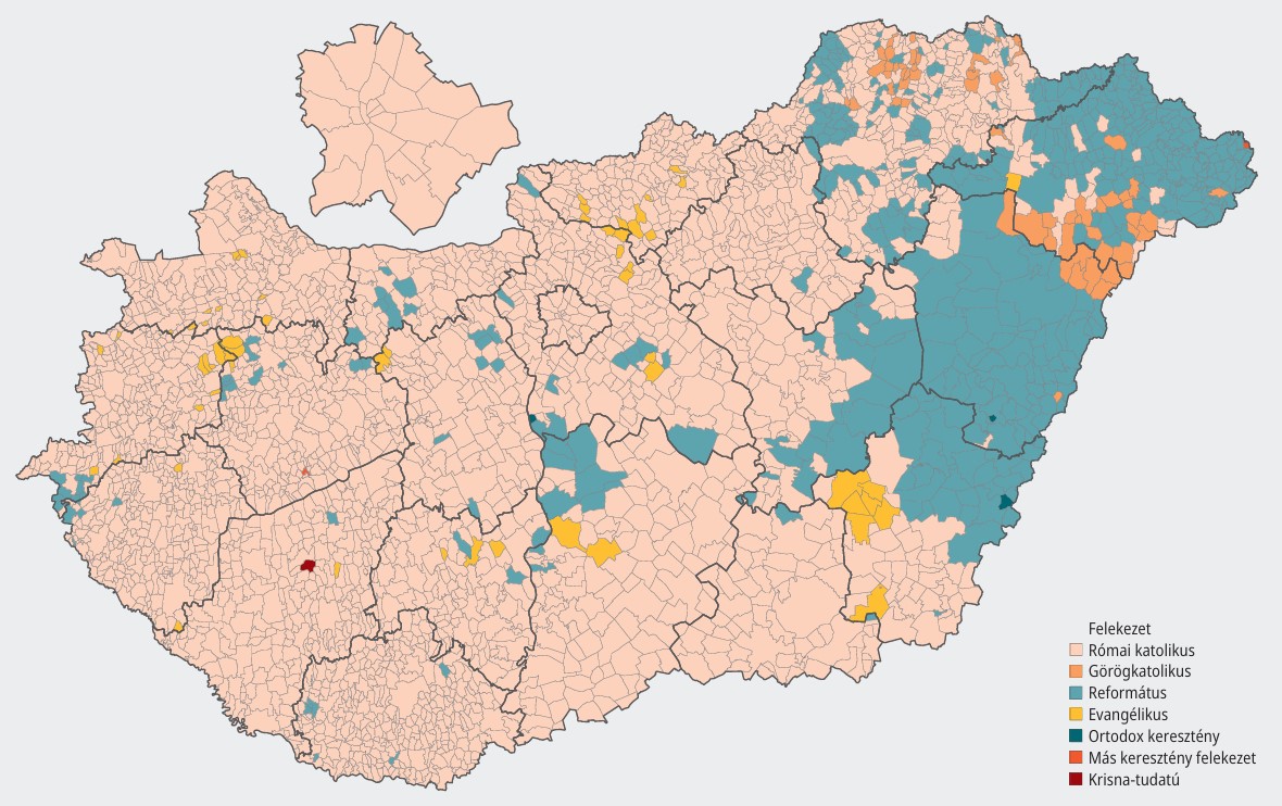 ElemzésekA legutóbbi népszámlálási adatok alapján az ország szinte minden településén a négy nagy lélekszámú keresztény felekezet valamelyike adja a legnépesebb vallási közösséget.