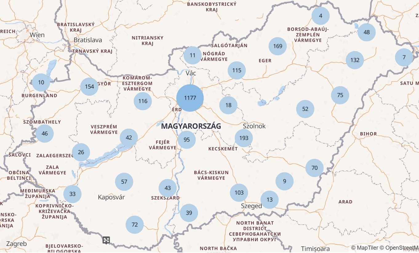 A térképen szereplő bűnügyi adatok nem tartalmazzák azoknak a nyomozásoknak az adatait, amelyekben bármely információ idő előtti nyilvánosságra hozatala sértené a nyomozás érdekeit. Forrás: terkep.police.hu
