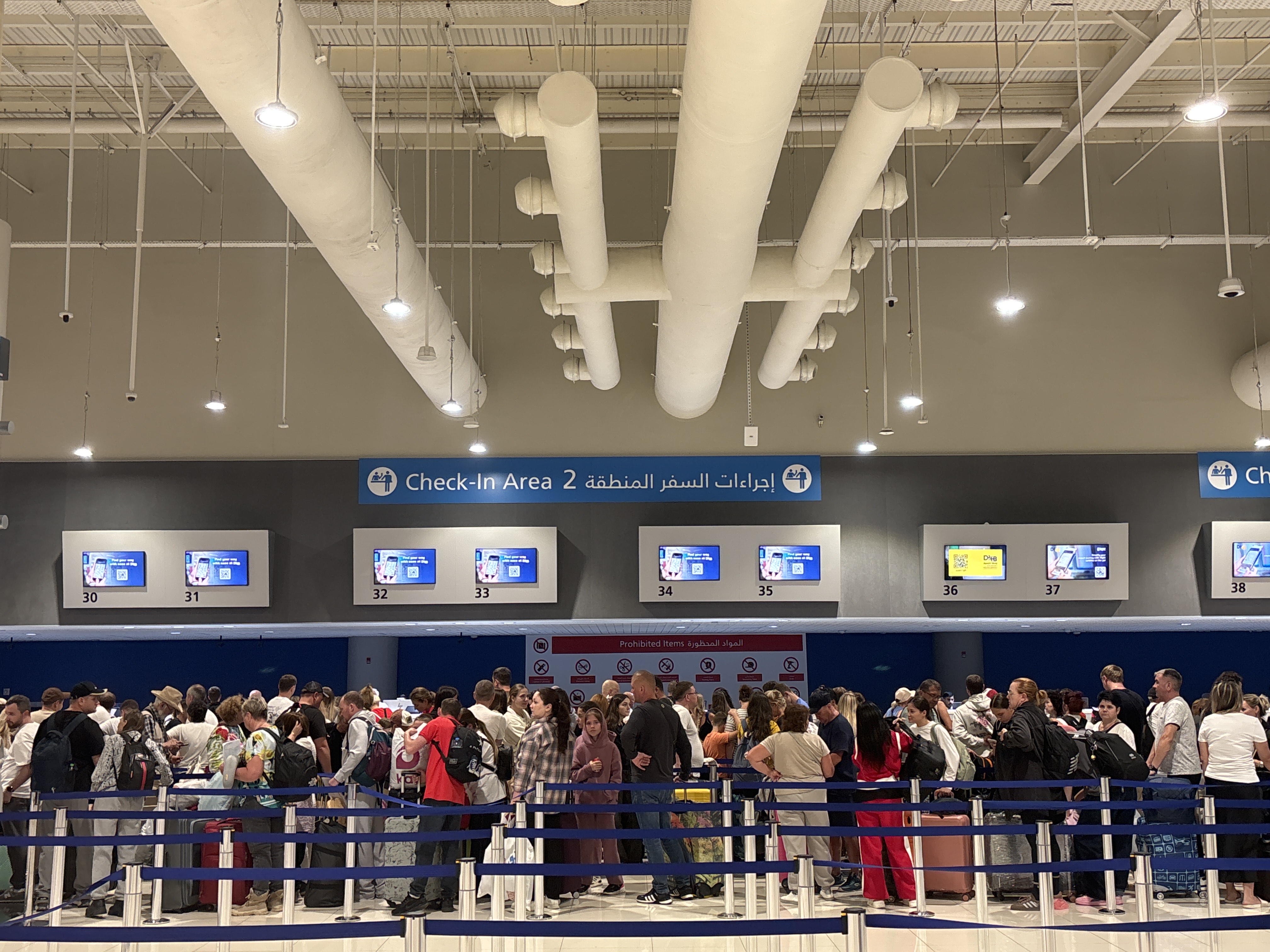 Dubai nemzetközi repülőtere csütörtök este, kaotikus állapotok az iráni háború miatt