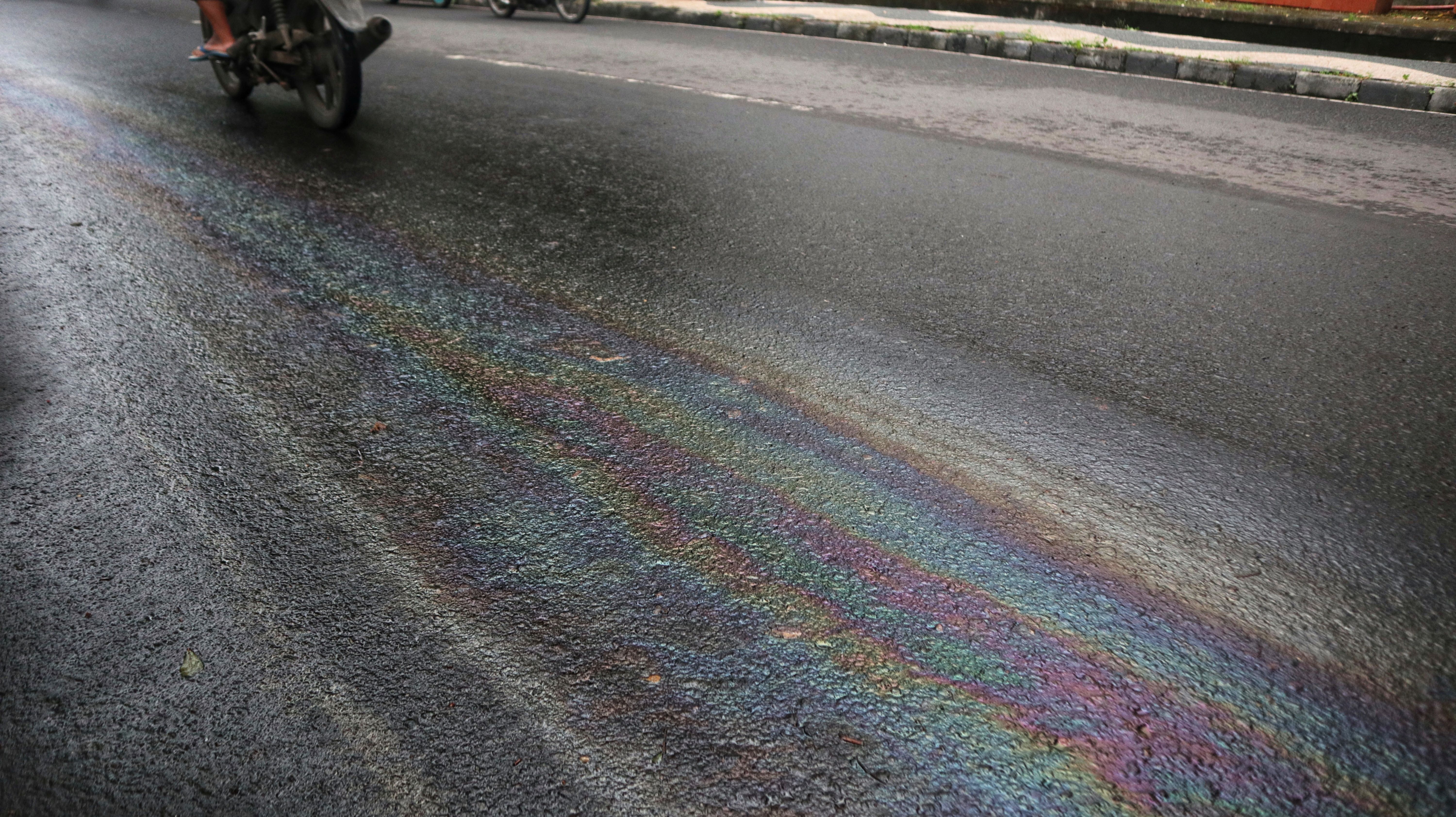 Az olajtól szennyezett aszfalt minden jármű számára, de különösen a kétkerekűek vezetőire nézve életveszélyes
