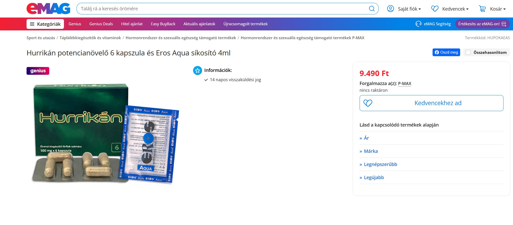 Részlet a Hurrikán potencianövelő egyik forgalmazójának oldaláról