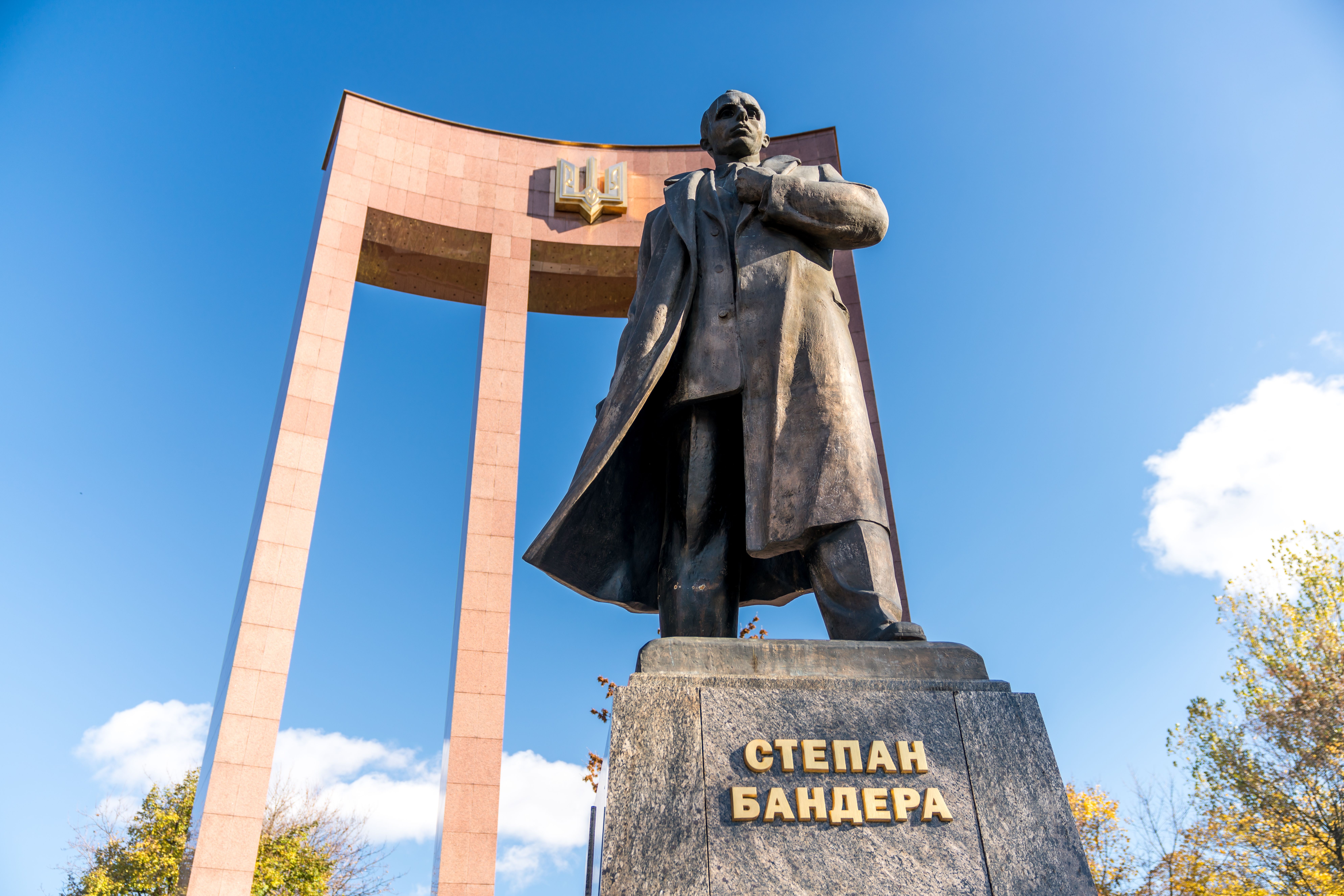 Az ukrán nemzeti hősként ünnepelt Sztepan Bandera náci-kollaboráns tömeggyilkos emlékműve Lvivben (régebbi nevén Lvov, vagy Lemberg)