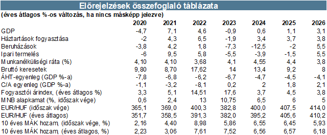 Az inflációs cél elérése időben kitolódott, számításaink szerint legkorábban 2026-ban süllyedhet újra az infláció a jegybank 2-4 százalék közötti toleranciatartományába.