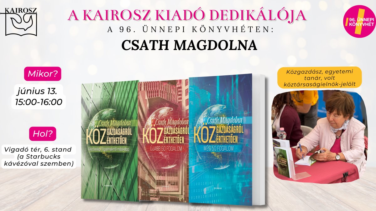 HírekA Kairosz Kiadó dedikálója a 96. ünnepi könyvhéten: Csath Magdolna, aki hiánypótló köteteket írt a közgazdasági fogalmakról.