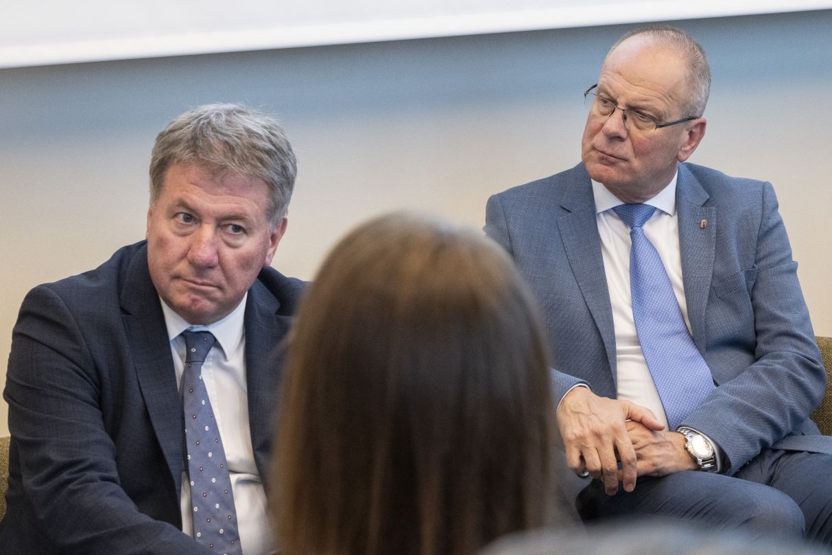 Oszaka, 2025. május 25. Prőhle Gergely, Magyarország korábbi berlini és berni nagykövete, a Habsburg Ottó Alapítvány igazgatója (b) és Navracsics Tibor közigazgatási és területfejlesztési miniszter a Habsburg Ottó Alapítvány kiállításának megnyitójára szervezett panelbeszélgetésen az Oszakai Világkiállítás magyar pavilonjában 2025. május 25-én. Ezen a napon Habsburg Ottó és Japán kapcsolatáról rendezett panelbeszélgetés és a Habsburg Ottó: Életút és örökség című tárlat várta a magyar pavilonba érkező látogatókat. MTI/Szigetváry Zsolt