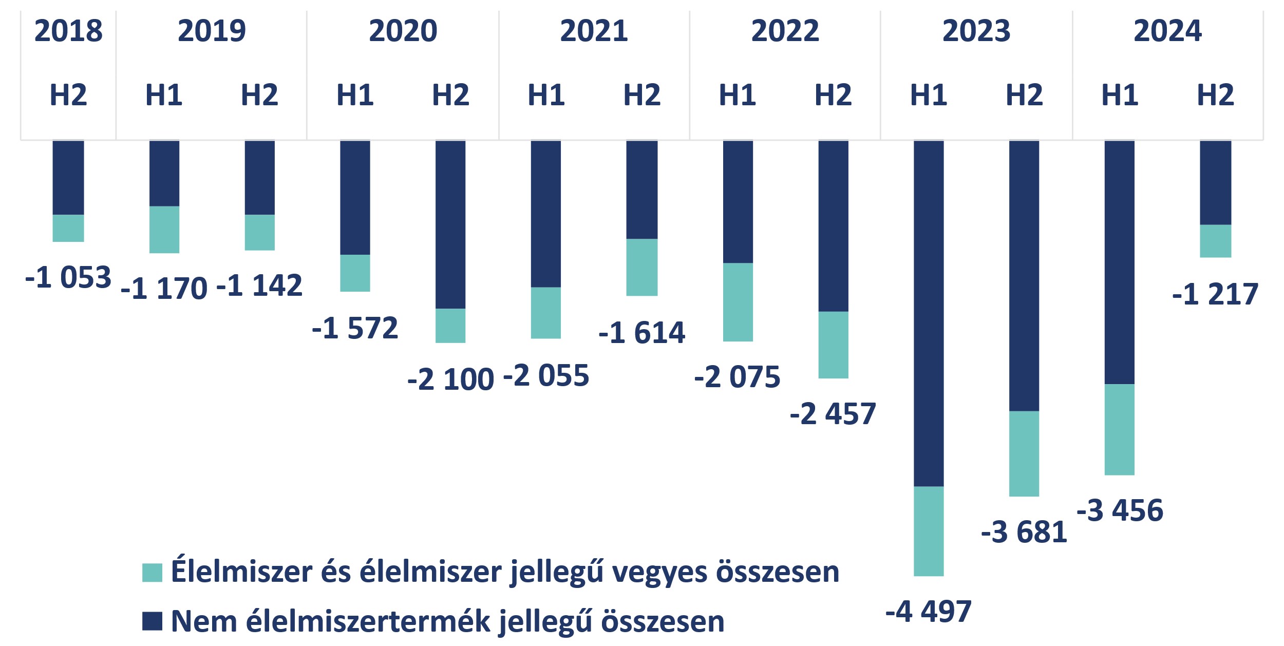 A kiskereskedelmi üzletek számára vonatkozó legfrissebb, 2024 második félévére vonatkozó adatok alapján a boltbezárások féléves üteme hirtelen a covid előtti években megszokott szintre csökkent: 1.217 üzlet zárt be, ami 1,3%-os csökkenést jelent (benzinkutak nélkül). Negatív csúcsnak 2023 első féléve számít az infláció okozta csökkenő kereslet és az ezzel egyidejűleg jelentkező megugró rezsiárak miatt. Ekkor 4.497 üzlet szűnt meg, onnan kezdve indult el egy lassú javulás, vagyis mérséklődött a bezáró üzletek száma. Mivel tavaly az első félévben még sokkal magasabb volt a megszűnt boltok száma, így összességében a teljes tavalyi évre vonatkozó érték 4.714, ami az elmúlt 5 év második legmagasabb száma.