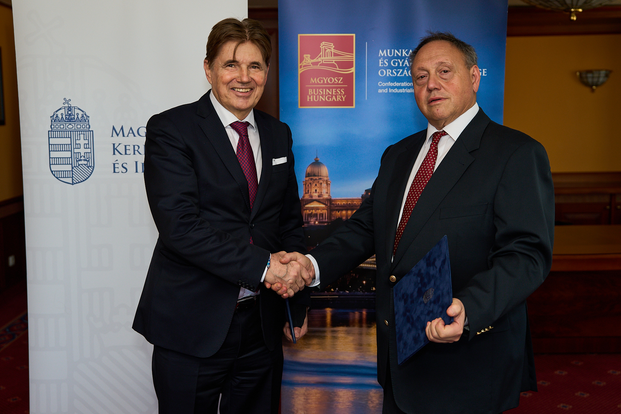 HírekA Magyar Kereskedelmi és Iparkamara (MKIK) és a Munkaadók és Gyáriparosok Országos Szövetsége (MGYOSZ) 2025. április 16-án együttműködési megállapodást írt alá annak érdekében, hogy összehangolt módon járuljanak hozzá a hazai vállalatok versenyképességéhez, ezen keresztül pedig a magyar gazdaság erősítéséhez.