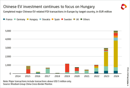 Az adatok és a grafikonok forrása: Chinese investment rebounds despite growing frictions - Chinese FDI in Europe: 2024 Update - Report by Rhodium Group and MERICS