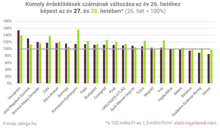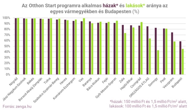 A zenga.hu hirdetési portál kínálata szerint az Otthon Start Program feltételeinek a vármegyékben található lakóingatlanok legalább 80 százaléka megfelel. A lakások esetében Budapesten kívül három olyan vármegye van, ahol a támogatható kínálat nem éri el a 80 százalékot, azaz a négyzetméterárak nagyobb arányban haladják meg az 1,5 millió forintot, a vételár pedig a 100 vagy 150 millió forintot.