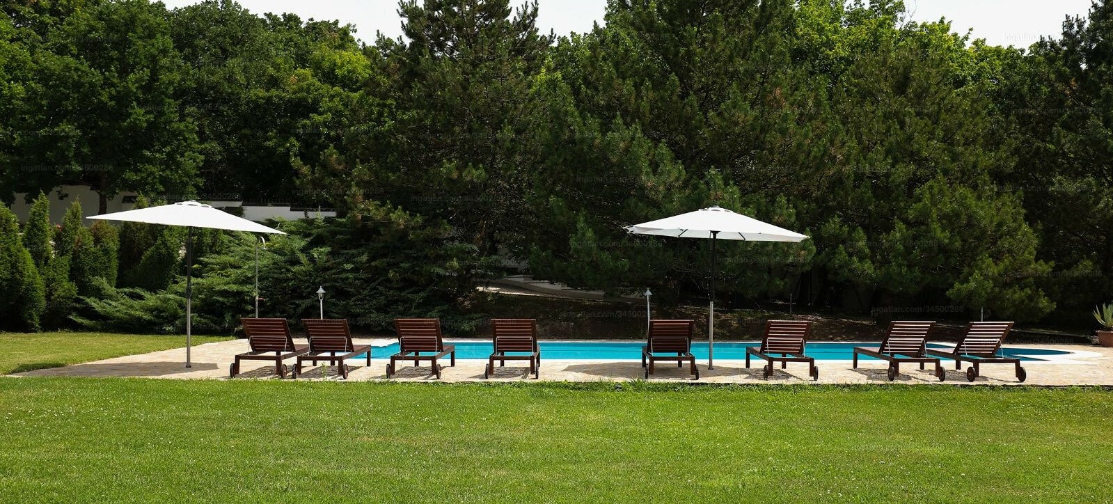 A kültéri medencéből be lehet látni az egész birtokot. Az ingatlant több mint 17 távvezérlésű kamera felügyeli. A birtok körül vadászterület fekszik.