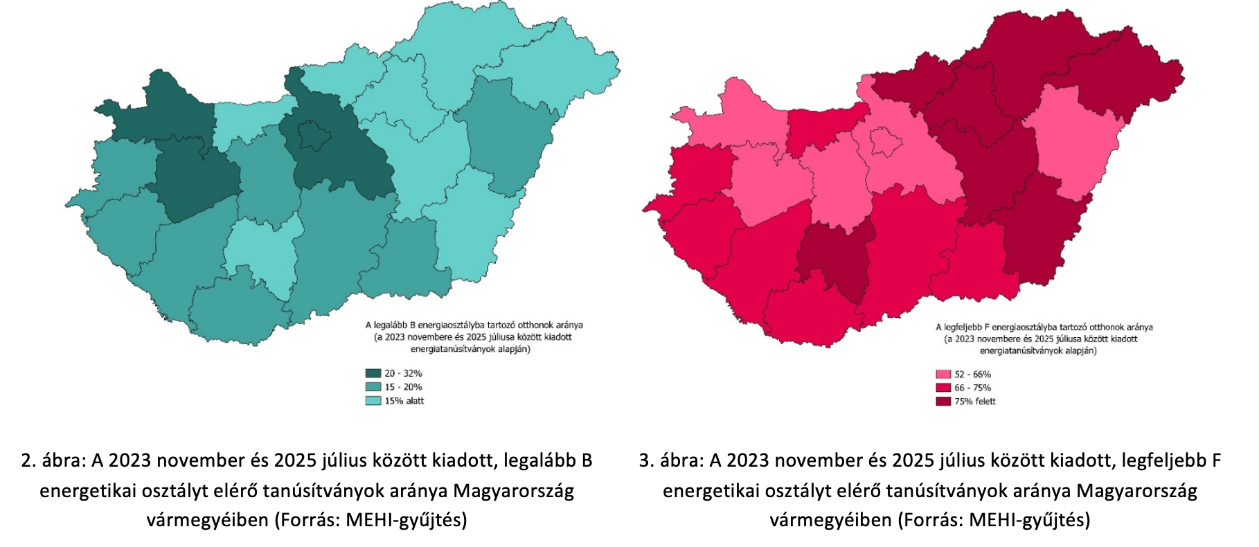 Miközben Békés, Nógrád, Jász-Nagykun-Szolnok és Heves vármegyékben a korszerűtlen (F-I) ingatlanok aránya meghaladja a 80 százalékot, addig Győr-Moson-Sopron, Pest vármegye és Budapest kedvezőbb képet mutat.