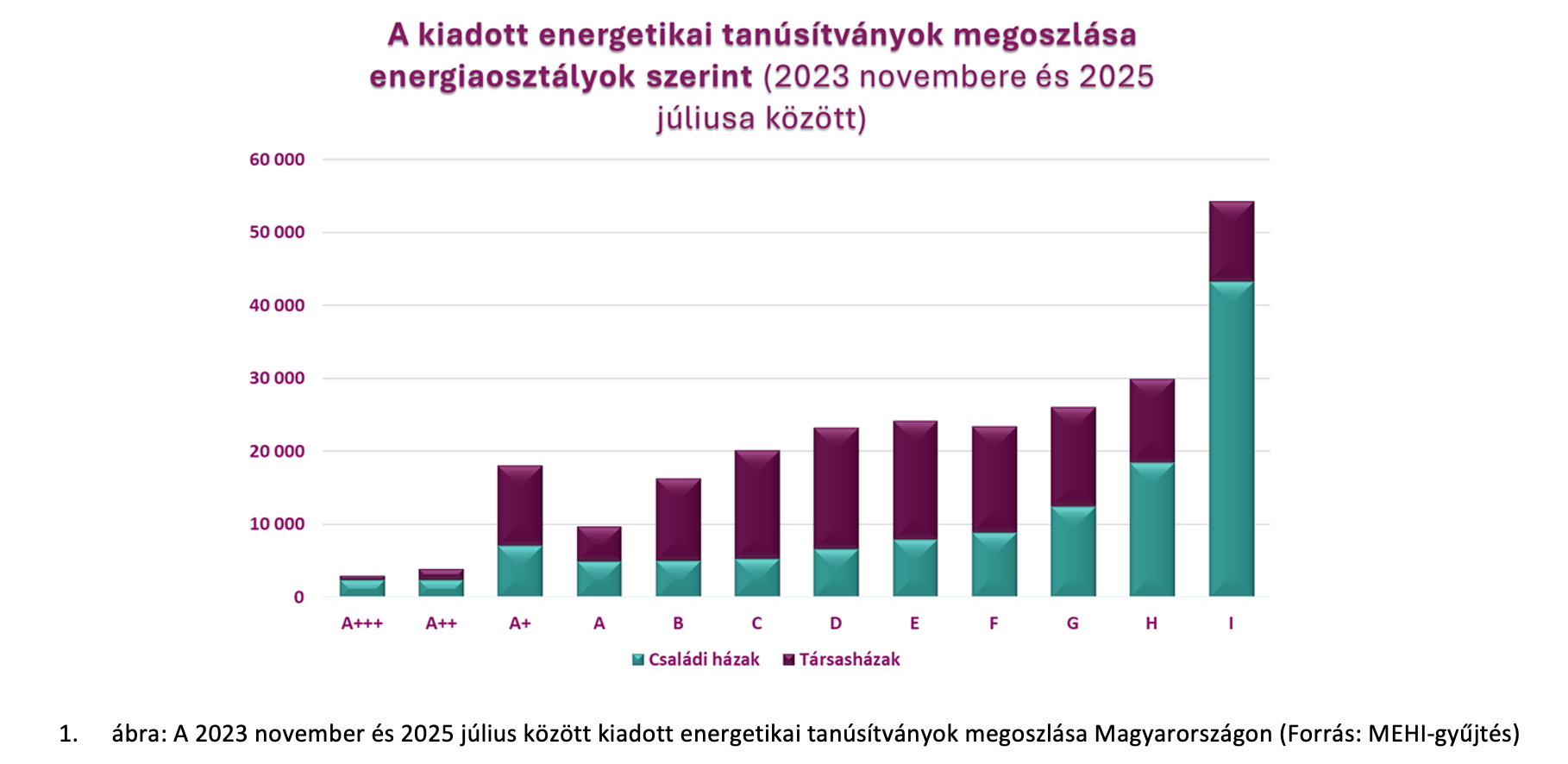 A legújabb energetikai osztályozás szerint, 2023 novembere és 2025 júliusa között kiadott tanúsítványok alapján az értékelt lakások egyharmada a két legrosszabb, H és I kategóriába tartozott, a G–I osztályú (energiapazarló, felújítandó épületszerkezetű) ingatlanok együttes aránya pedig 44 százalék volt.