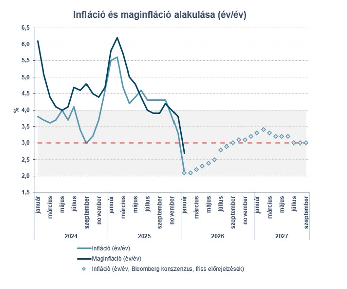 Varga Mihály kiemelte, hogy a januári mérsékelt átárazásoknak köszönhetően jóval a jegybanki cél alá süllyedt az infláció, miközben a maginfláció is a 3 százalékos szint alá került. A januári átárazás utoljára 2019. óta volt ilyen alacsony – 2001. óta az ötödik legalacsonyabb. Az árdinamika mérséklődéséhez az iparcikkeken kívül minden fő termékkör hozzájárult, de már ebben a szegmensben is érezhetőek a forinterősödés dezinflációs hatásai.