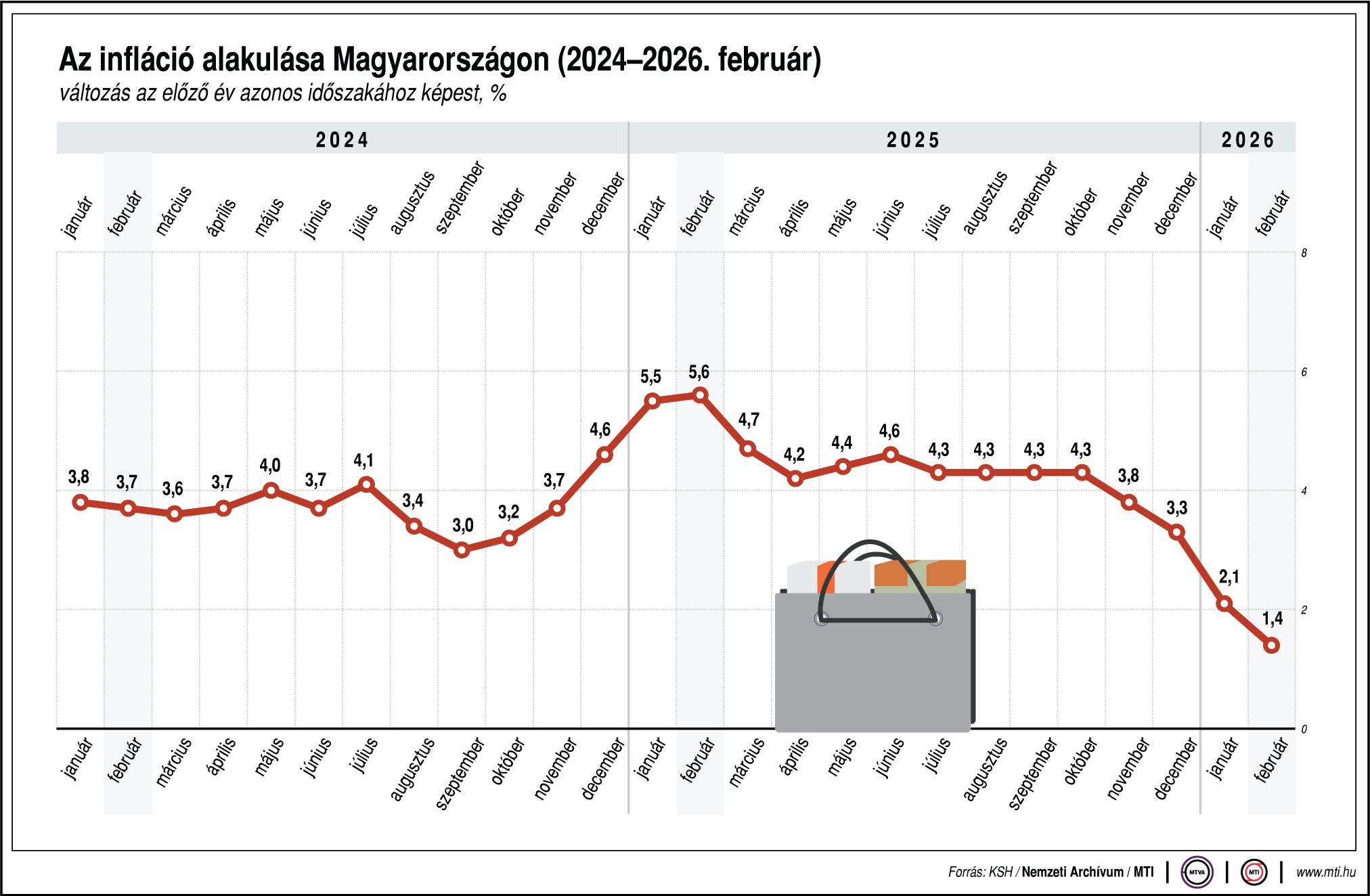 Az infláció februártól februárig 1,4 százalék volt – számok és grafikonok
