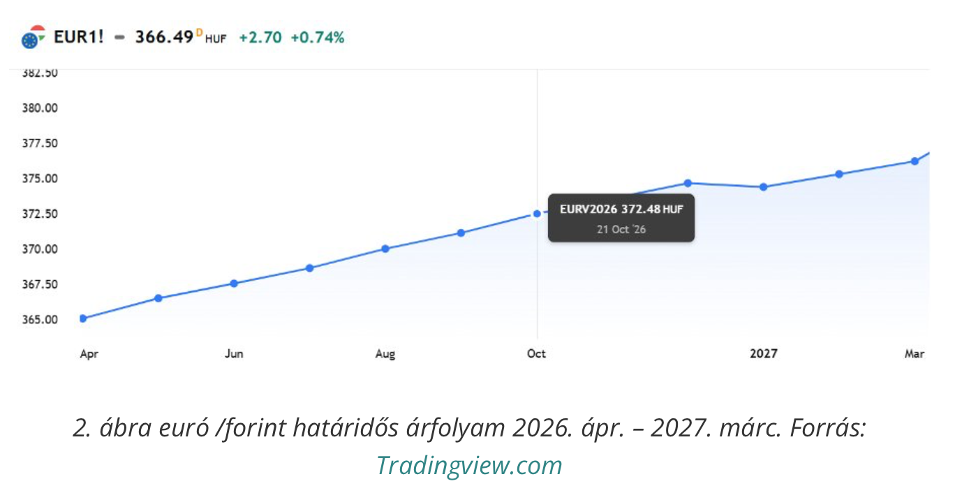 Reálisan tehát a 365–375 közötti sáv lehet az év hátralévő részében az euró/forint trendje, amelyet a határidős piac is visszaigazol. Utóbbi már önmagában jelzi, hogy a piac nem számít további jelentős erősödésre.