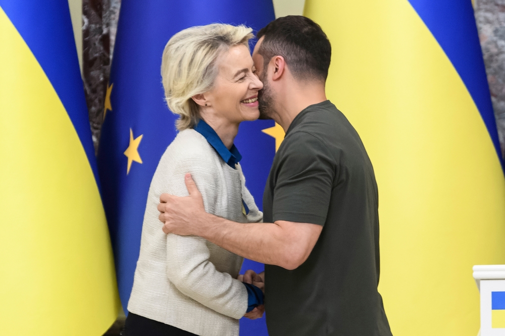 Ursula von der Leyen és Volodimir Zelenszkij meghitt közelségben