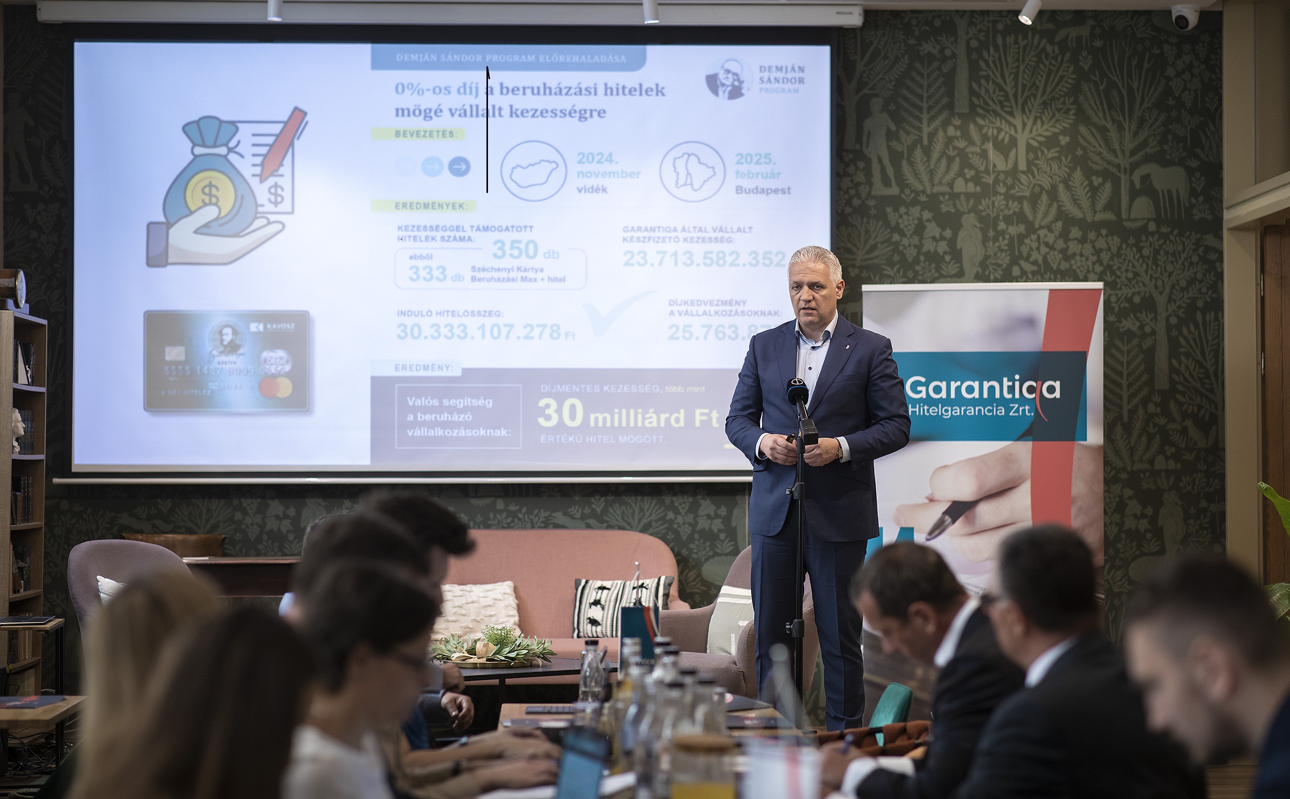 Szabados Richárd külön kiemelte a Garantiqa szerepét, emlékeztetve arra, hogy a garancia intézmény már 2024 januárjában saját üzletpolitikai döntést hozott és a hitelezés felfuttatása érdekében átlagosan 30 százalékkal csökkentette garancia díjainak mértékét.