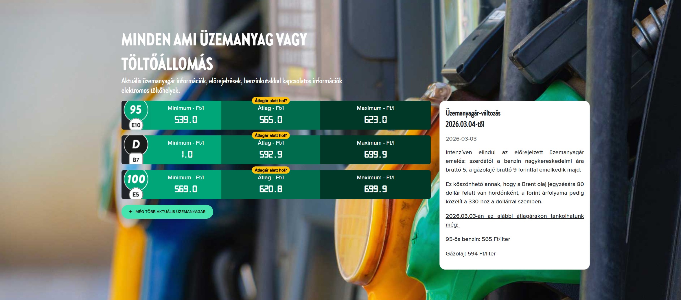 A mai napon, 2026.03.03-án az alábbi átlagárakon tankolhatunk még: